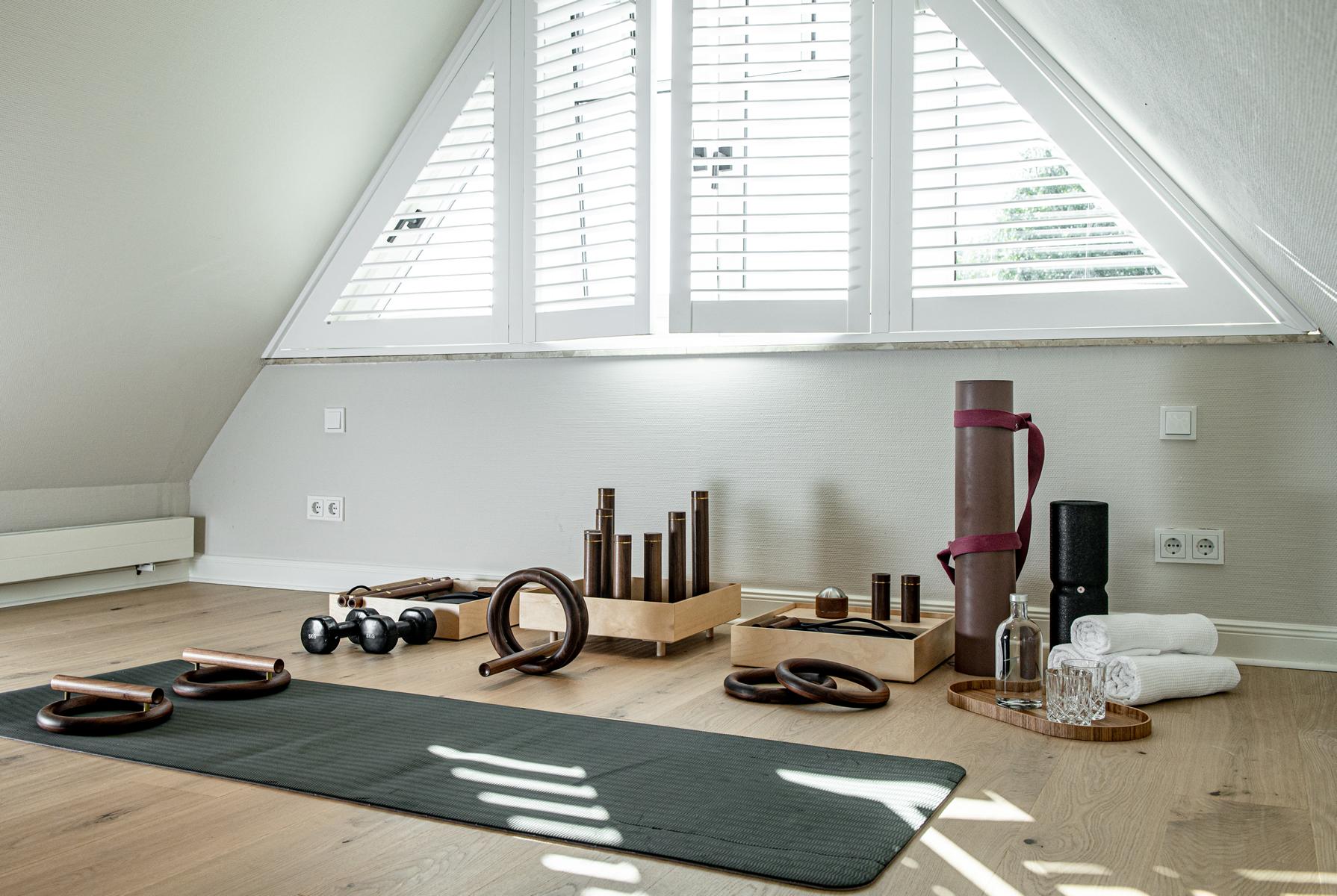 Im Dachgeschoss, direkt neben unserer Sauna, finden Sie den Wellfit-Bereich mit genügend Platz für Ihre Übungen und Yoga-Sessions. Dazu stehen Ihnen hochwertige Geräte von kenko, Yoga-Matten und ein großer Ganzkörperspiegel zur Verfügung. Der wohl charmanteste „Fitness“-Raum auf Sylt.